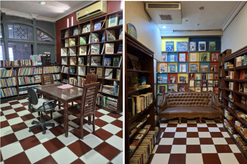 Kursi dan meja baca yang menghiasi sudut-sudut toko